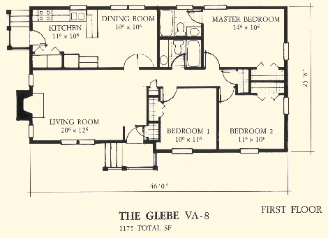 'Glebe House.' Most Glebe houses have vanished, victims of neglect after the Revolutionary War. This Traditional American plan replicates a typical Glebe House.